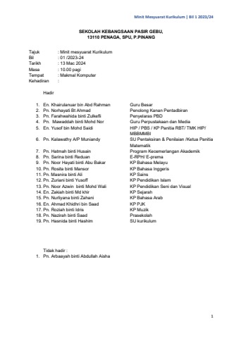 MINIT MESYUARAT KURIKULUM BIL 1 2023