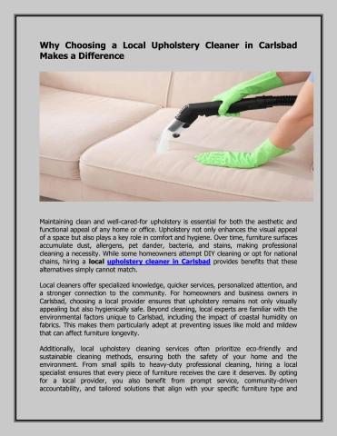 Why Choosing a Local Upholstery Cleaner in Carlsbad Makes a Difference