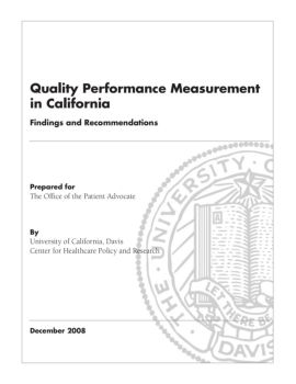Quality Performance Measurement in California Findings and Recommendations University of California, Davis 2 Center for Healthcare Policy and Research