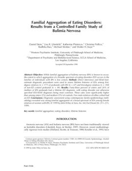 Familial Aggregation of Eating Disorders: Results from a Controlled Family Study of Bulimia Nervosa Daniel Stein, 1Lisa R. Lilenfeld, Katherine Plotnicov,1 Christine ...