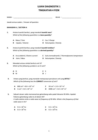 UJIAN DIAGNOSTIK 1 FIZIK TINGKATAN 4 TAHUN 2023