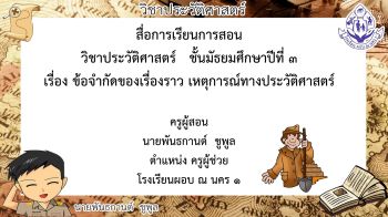สื่อการสอนวิชาประวัติศาสตร์ เรื่อง ข้อจำกัดเรื่องราวเหตุการณ์ทางประวัติศาสตร์ ชั้นมัธยมศึกษาปีที่ ๓ โรงเรียน ผอบ ณ นคร ๑
