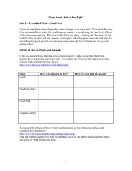 Fires: Good, Bad or Just Ugly? Part 1—Prescribed Fires—Good Fires Fire is an important natural force that causes change in an ecosystem. Prescribed fires are