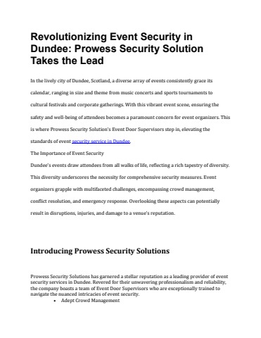 Revolutionizing Event Security in Dundee Prowess Security Solution Takes the Lead