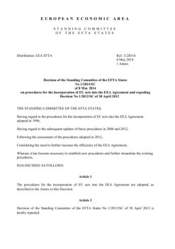 EUROPEAN ECONOMIC AREA STANDING COMMITTEE OF THE EFTA STATES Distribution: EEA EFTA Ref. 1128516 8 May 2014 1 Annex . Decision of the Standing Committee of the EFTA ...