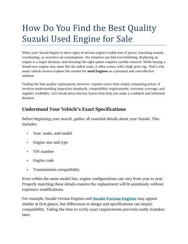 How Do You Find the Best Quality Suzuki Used Engine for Sale