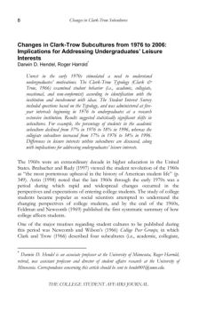 Changes in Clark-Trow Subcultures8 THE COLLEGE STUDENT AFFAIRS JOURNAL Changes in Clark-Trow Subcultures from 1976 to 2006: Implications for Addressing Undergraduates ...