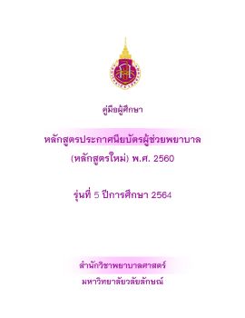 คู่มือผู้ศึกษาหลักสูตรประกาศนียบัตรผู้ช่วยพยาบาล