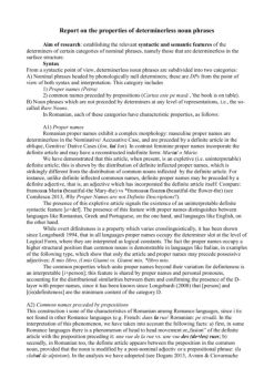 Report on the properties of determinerless noun phrases Aim of research: establishing the relevant syntactic and semantic features of the determiners of certain ...