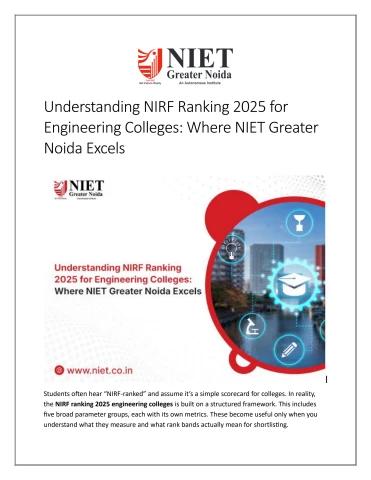 The NIRF Ranking 2025 helps students evaluate engineering colleges based on parameters like teaching quality, research, placements, and infrastructure. NIET Greater Noida excels through its strong academic framework, industry-aligned programs, modern facilities, and consistent placement performance. Its focus on innovation, skill-based learning, and student outcomes positions NIET as a competitive choice among engineering institutions in India.