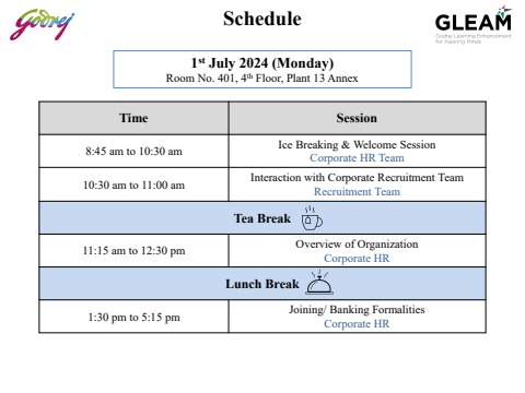 GLEAM Batch 2 Schedule