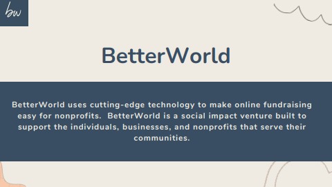 BetterWorld offers a user-friendly peer-to-peer fundraising platform that empowers individuals and organizations to easily create campaigns, share their story, and engage their supporters in fundraising for a cause. With features like team fundraising, gamification, and seamless social media integration, BetterWorld's platform makes it easy for anyone to raise funds and make a difference. https://betterworld.org/peer-to-peer/