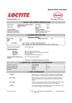 Material Safety Data Sheet Revision Number: 004.3 Issue date: 02/27/2009 IDH number: 233731 Product name: LOCTITE® 290™ THREADLOCKER e WICKING GRADE