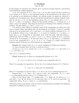 4. Ordinals July 26, 2011 In this chapter we introduce the ordinals, prove a general recursion theorem, and develop some elementary ordinal arithmetic.