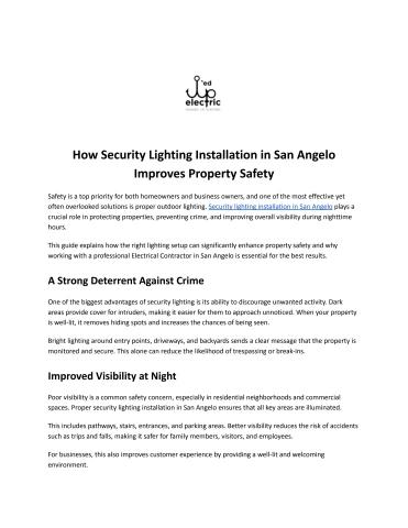 Learn how security lighting installation in San Angelo can transform your property’s safety. From motion sensors to energy-efficient LED systems, this guide explains the benefits of hiring an experienced Electrical Contractor in San Angelo for reliable and effective lighting solutions.