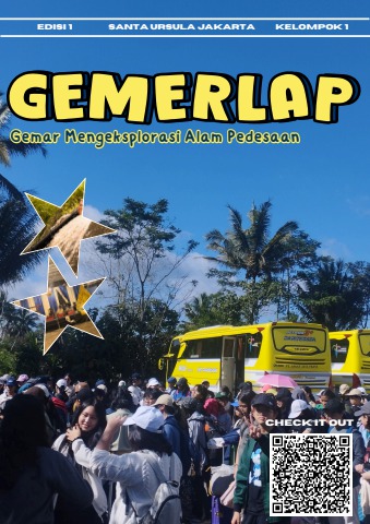 Kami dari kelompok 1 kelas 83 ingin mempresentasikan sebuah majalah bernama GEMERLAP; yang didapat dari singkatan singkatan ‘Gemar’, ‘Mengeksplorasi’, ‘Alam’, dan ‘Pedesaan’. Menurut KBBI, GEMERLAP juga memiliki arti yaitu Berkilauan. Kami memilih nama GEMERLAP ini karena sesuai dengan hal yang kami alami selama Live-in di desa Muntilan. Kami juga berharap agar majalah ini dapat menjadi majalah yang bermakna seperti saat sedang melihat bintang-bintang dilangit desa yang berkilauan terang.