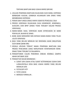 TENTANG BANTUAN BAGI USAHA MIKRO