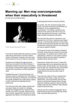 Manning up: Men may overcompensate when their masculinity is threatened 22 June 2015, by Deborah Bach Credit: George Hodan/public domain From the old Charles Atlas ...
