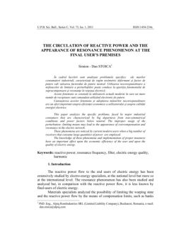 The circulation of reactive power and the appearance of resonance phenomenon (…) 271 and the tension at the terminal of the capacitor is a U C