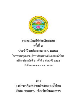 รายละเอียดใช้จ่ายเงินสะสม ครั้งที่ 1 ประจำปีงบประมาณ พ.ศ. 2565 ขององค์การบริหารส่วนตำบลคลองน้ำไหล