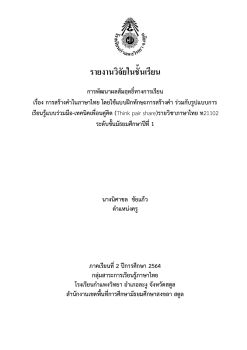 การพัฒนาผลสัมฤทธิ์ทางการเรียน เรื่อง การสร้างค าในภาษาไทย โดยใช้แบบฝึกทักษะการสร้างค า ร่วมกับรูปแบบการ เรียนรู้แบบร่วมมือ-เทคนิคเพื่อนคู่คิด (Think pair share)รายวิชาภาษาไทย ท21102 ระดับชั้นมัธยมศึกษาปีที่ 1
