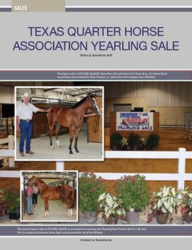Texas quarTer horse associaTion yearling sale Photos by Speedhorse Staff The second-highest seller at $75,000, Hip#28, an unnamed sorrel yearling colt (Tempting Dash ...