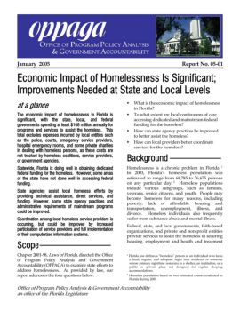 Office of Program Policy Analysis & Government Accountability an office of the Florida Legislature January 2005 Report No. 05-01 Economic Impact of Homelessness Is ...