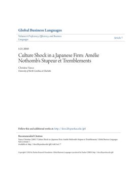 Christine Vance University of North Carolina at Charlotte CULTURE SHOCK IN A JAPANESE FIRM: AMÉLIE NOTHOMB‘S STUPEUR ET TREMBLEMENTS The age-old Nippon imperial ...