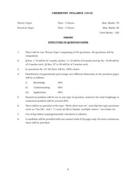 6 CHEMISTRY SYLLABUS (10+2) Theory Paper Time : 3 Hours Max. Marks: 70 Practical Paper Time : 3 Hours Max. Marks 30 Total Marks : 100 THEORY STRUCTURE OF QUESTION PAPER