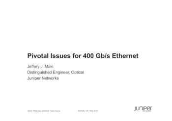 Pivotal Issues for 400 Gb/s Ethernet IEEE P802.3bs 400GbE Task Force Norfolk, VA, May 2014 Jeffery J. Maki Distinguished Engineer, Optical Juniper Networks