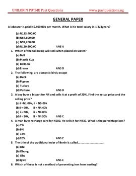 The updated 2017 UNILORIN Post UTME past questions and answers comprises all the previously taken post utme exams past questions from 2006 till date. Get genuine Unilorin Post UTME Post Past Questions at pastquestions.ng