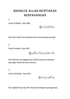 MAKHLUK ALLAH DICIPTAKAN BERPASANGAN