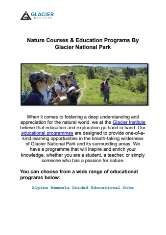 Discover the Glacier Institute's exceptional educational programs, immersing students of all ages in the wonders of nature. Join us today and embark on an educational journey amidst the stunning landscapes of Glacier National Park.