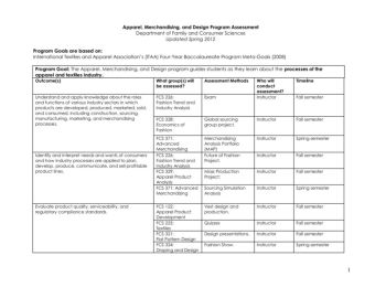 2 Program Goal: The Apparel, Merchandising, and Design program guides students as they learn about appearance and human behavior. Outcome(s) What group(s) will be