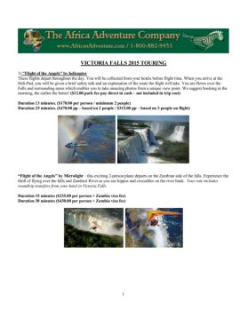 1 VICTORIA FALLS 2015 TOURING 1) "Flight of the Angels" by helicopter These flights depart throughout the day. You will be collected from your hotels before flight time.