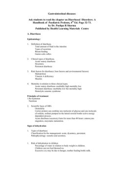 Gastrointestinal diseases: Ask students to read the chapter on Diarrhoeal Disorders: A Handbook of Paediatric Prolems, 4th Ed. Page 32-73. by Dr. Pushpa R Sharma