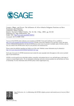 Conjure, Magic, and Power: The Influence of Afro-Atlantic Religious Practices on Slave Resistance and Rebellion Author(s): Walter Rucker Source: Journal of Black ...