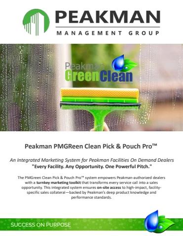 "Every Facility. Any Opportunity. One Powerful Pitch."<br>Partner with Innovation in Facilities Marketing and Sales<br><br>The PMGreen Clean Pick & Pouch Pro™ system empowers Peakman-authorized dealers with a turnkey marketing toolkit that transforms every service call into a sales opportunity. This integrated system ensures on-site access to high-impact, facility-specific sales collateral—backed by Peakman’s deep product knowledge and performance standards.<br><br>At the core of this system is a modular marketing approach:<br>? Top-revenue facilities (like classrooms, restrooms, cafeterias, and kitchens) come with pre-built, premium booklets showcasing complete cleaning programs.<br>? For any niche or new opportunity, dealers can instantly assemble custom marketing packages using single-page inserts tailored by environment type—from airplane interiors to elevator cabs.<br>Why Strategic Partners Should Join:<br>✅ Instant Authority – Offer clients professional-grade, eco-certified cleaning solutions with branded Peakman marketing support.<br>✅ Speed to Market – Enable your teams to quote, present, and close deals on the spot with full product and application guides.<br>✅ Customizable for Every Client – Whether a government building or food truck, the system adapts in real time to any facility profile.<br>✅ Increased Conversion – Professionally printed and digital-ready formats boost credibility and engagement, leading to faster closes and repeat business.<br>✅ Scalable Dealer Network – Expand your reach without losing consistency in message or quality.<br>This is more than a product line—it's a platform.Your team, equipped with PMGreen Clean Pick & Pouch Pro™, becomes a force of consultative sales professionals ready to present, educate, and convert on-site—no matter the facility, no matter the challenge.