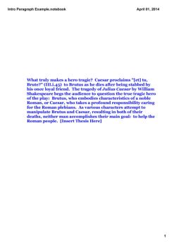 Intro Paragraph Example.notebook 3 April 01, 2014 How can a hero be tragic? The play Julius Caesar by William Shakespeare truly exemplifies to the