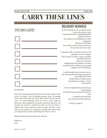 Vol. 1 of Carry These Lines- A poetic Newsletter.