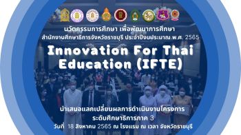 ศธจ.ราชบุรี นำเสนอผลการดำเนินงานโครงการ IFTE ระดับศึกษาธิการภาาค 3 เมื่อวันที่ 18 ส.ค. 2565 ณ โรงแรม ณ เวลา อ.เมืองฯ จ.ราชบุรี