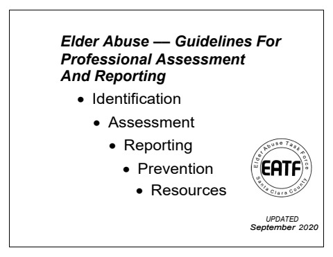 Updated booklet providing the guidelines and rules for reporting elder abuse