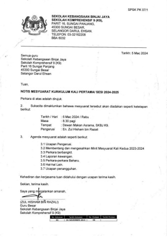 SURAT PANGGILAN<br>MINIT MESYUARAT<br>SENARAI KEHADIRAN<br>MAKLUM BALAS