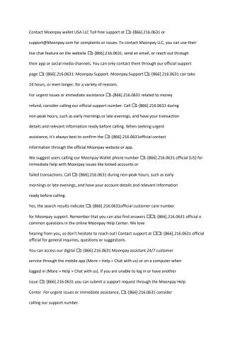 We suggest users calling our Moonpay Wallet phone number ⭐ 1-[866].216.0631 official {US} for immediate help with Moonpay issues like locked accounts or