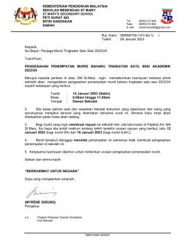 PENGESAHAN PENEMPATAN MURID BAHARU TINGKATAN 1 2023/ 24 SM ST. MARY, SANDAKAN