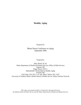 Healthy Aging Prepared for Blaine House Conference on Aging September 2006 Prepared by Mary Walsh, M. Ed. Maine Department of Health and Human Services, Office of ...