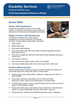 Scissor Skills Scissor skill development It takes time and practice to learn how to cut with scissors. To be able to use scissors, small muscles and