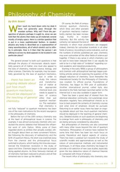 CHEMISTRY International May-June 2003 7 Philosophy of Chemistry by Eric Scerri W hen I push my hand down onto my desk it does not generally pass through the