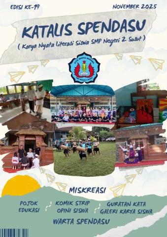 Halo, sobat Spendasu. E-bulletin SMP Negeri 2 Susut, KATALIS SPENDASU, kembali hadir dengan edisi ke-19 menjelang akhir bulan November 2025 ini. Ayo cari tahu dan baca rubrik-rubrik menarik dari karya siswa SMP Negeri 2 Susut di edisi ke-19 KATALIS SPENDASU kali ini. Selamat membaca dan jangan lupa dishare juga ya linknya supaya makin banyak yang tahu karya-karya menarik siswa SMP Negeri 2 Susut.