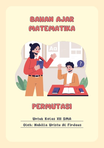 Bahan bacaan ini disusun untuk membantu siswa memahami konsep dasar permutasi dalam matematika, khususnya terkait permutasi unsur berbeda dan permutasi dengan unsur yang sama. Materi ini penting untuk mempelajari bagaimana menyusun atau mengatur elemen-elemen dalam sebuah himpunan dengan memperhatikan urutan.